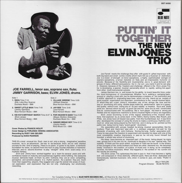 The New Elvin Jones Trio - Puttin' It Together (2x12", 45 RPM, Album, Limited Edition, Reissue, Remastered, Stereo) - Very Good (VG) / Near Mint (NM or M-)