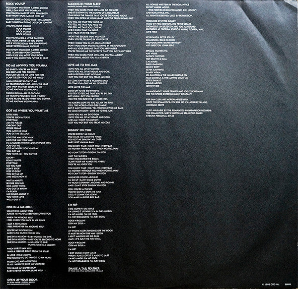 All Songs © 1983 Forever Endeavor Music, Inc. (ASCAP) And Romantics, Inc.