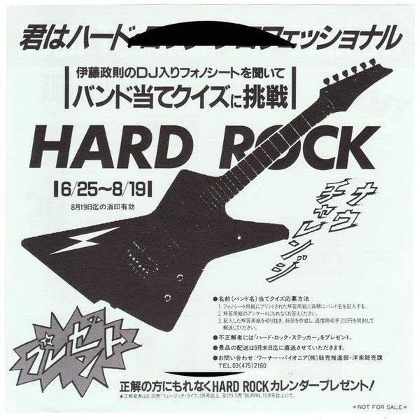 Comes with 4-pages glossy Japanese/English lyric insert & obi-strip,1st Press Hard Rock Campaign Obi, Booklet, Original Hard Rock Quiz 7inch Flexi.