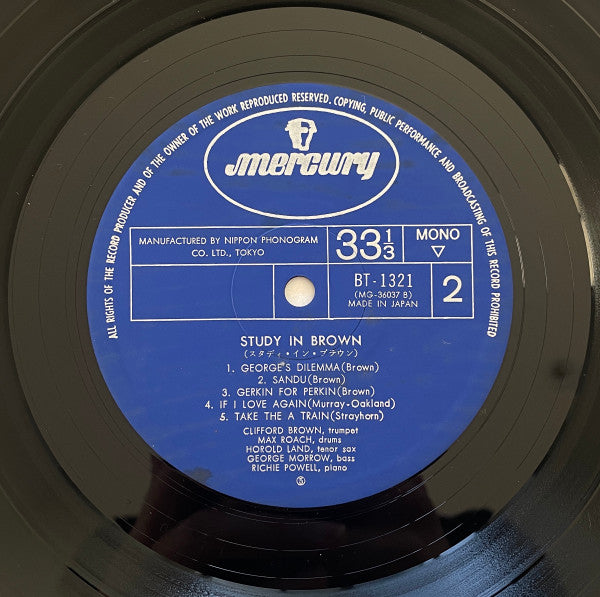 Released with a two sided brown & white obi the back of which has a catalogue of the releases in the reissued [l=Clifford Brown Collection] and a record label questionnaireA1, A2, B2: Recorded in New York Feb. 25, 1955