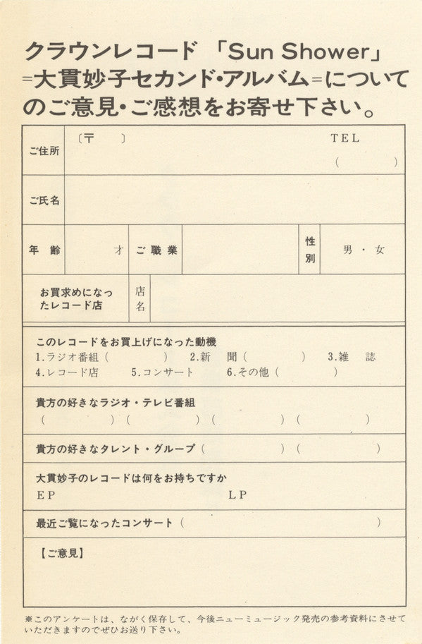 Taeko Ohnuki - Sunshower (Vinyl, LP, Album, Stereo) Very Good Plus (VG+) / Very Good Plus (VG+)