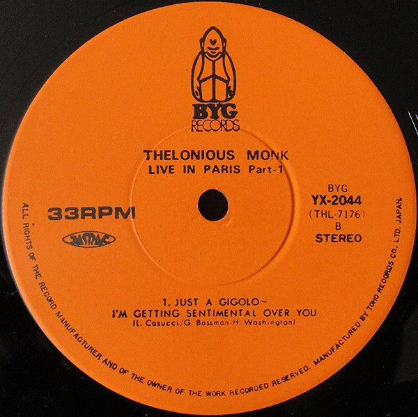 Thelonious Monk - Live In Paris Part 1 (LP, Album) - Near Mint (NM or M-) / Very Good Plus (VG+)