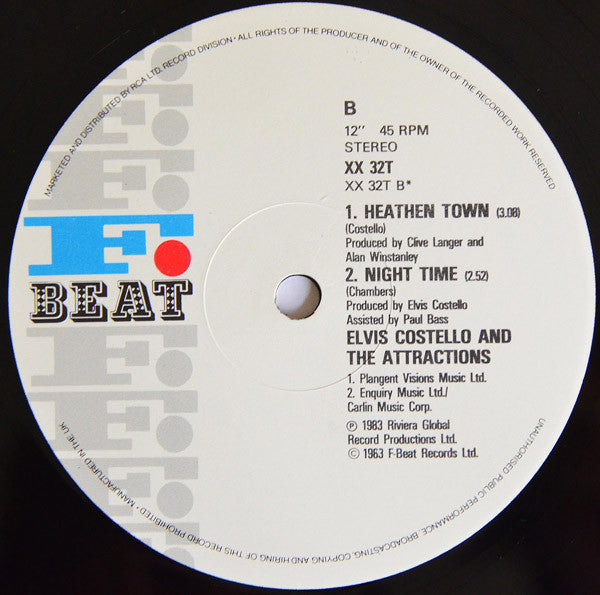 Elvis Costello & The Attractions - Everyday I Write The Book (Vinyl, 12", 45 RPM, Single, Stereo) Good Plus (G+) / Very Good (VG)
