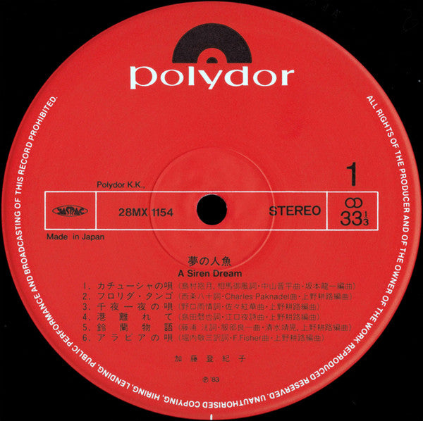 Tokiko Kato - A Siren Dream = 夢の人魚 (LP, Album) - Near Mint (NM or M-) / Very Good Plus (VG+)