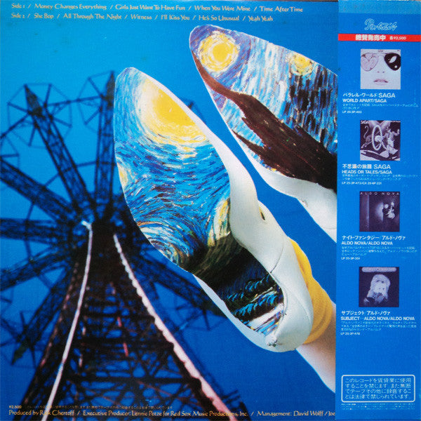 Two different obi strips exist (The blue one is first press; the yellow one hypes the album's first two big hit singles)℗1983 CBS, Inc.