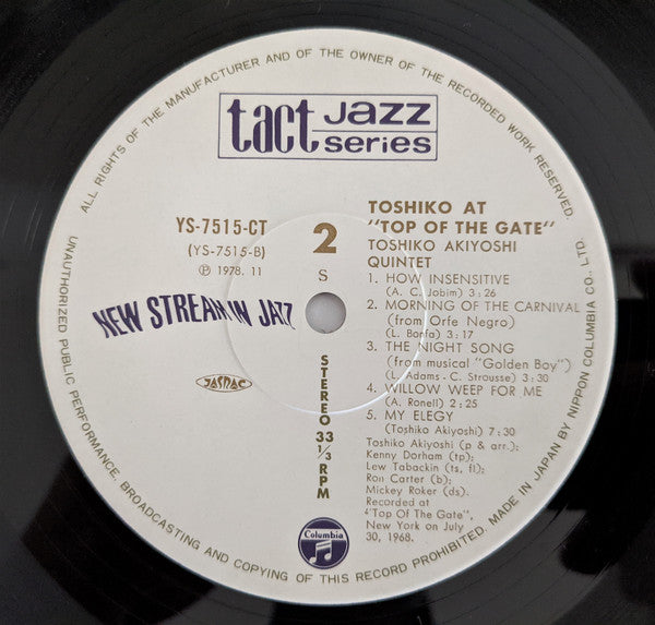 Toshiko Akiyoshi Quintet - Toshiko At Top Of The Gate (Vinyl, LP, Album, Reissue, Stereo) Near Mint (NM or M-) / Very Good (VG)