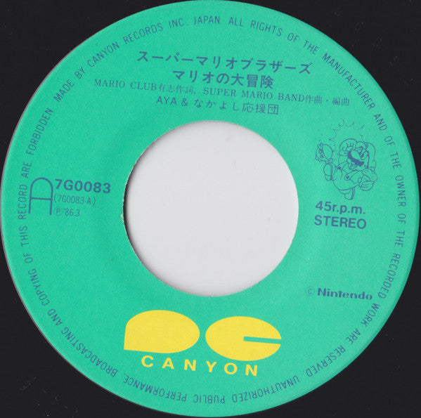 Aya & なかよし応援団 - マリオの大冒険 / クッパ一族かぞえ唄 (Vinyl, 7", 45 RPM, Single) Very Good (VG) / Very Good Plus (VG+)