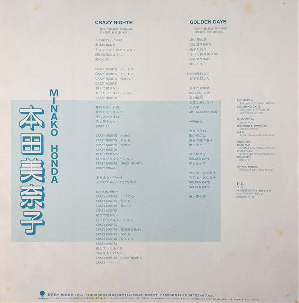 Minako Honda - Crazy Nights (Vinyl, 12", 45 RPM, Stereo) Near Mint (NM or M-) / Very Good Plus (VG+)