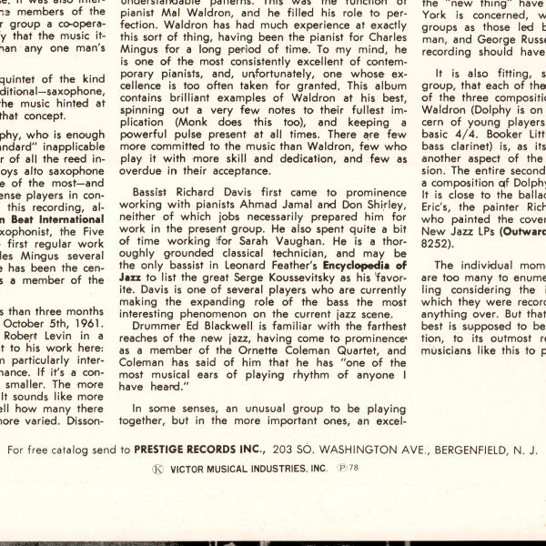 US legacy Cat# (Prestige / New Jazz) 8260 - Spine and back sleeve