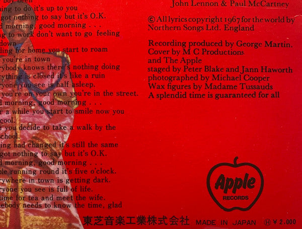Back cover: lower right corner has Apple Records logo, and "東芝音楽工業株式会社 MADE IN JAPAN Ⓗ ¥ 2,000" in one line.
