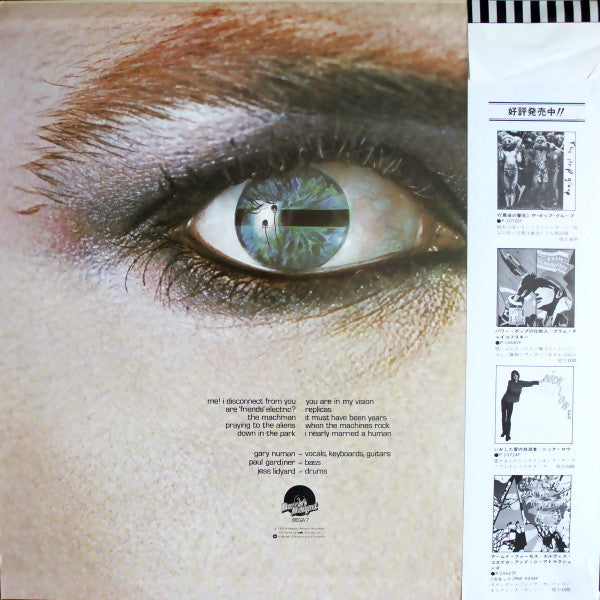 Comes with obi and 4 page insert.Insert is a fold-out with English on one side, Japanese on the other. The English side has credits, a photo of Numan, and lyrics, with Beggars Banquet being the only label mentioned (same as the sleeve). The Japanese side has a bio written by Micky Moriwaki on 1979. 7. 24, a tracklisting, and lyrics in Japanese.