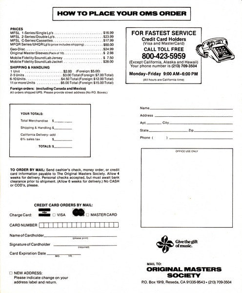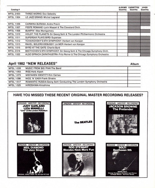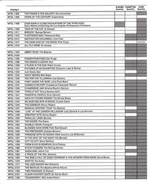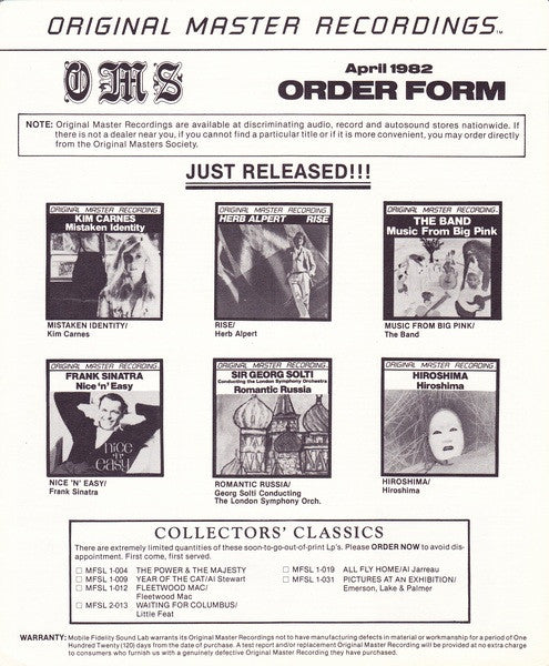(Logos on inserts) EMI America - Capitol Records - Mobile Fidelity Sound Lab