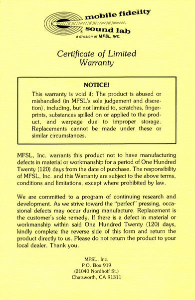 Manufactured and distributed by MFSL, Inc. under license from Capitol Records, Inc.
