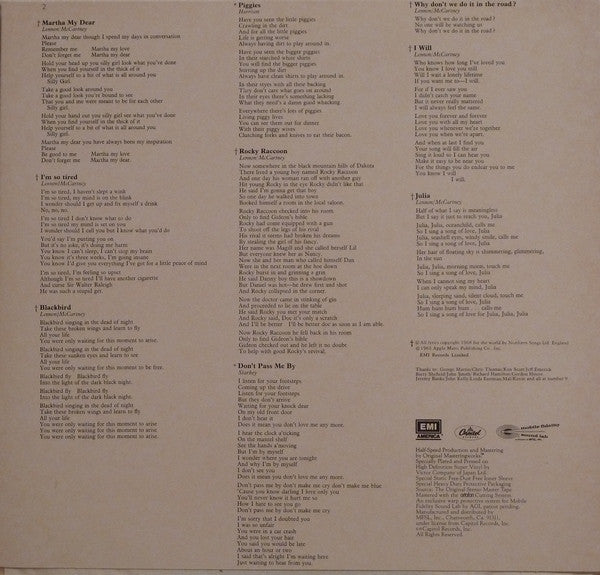 © All lyrics copyright 1968 for the world by Northern Songs Ltd. England