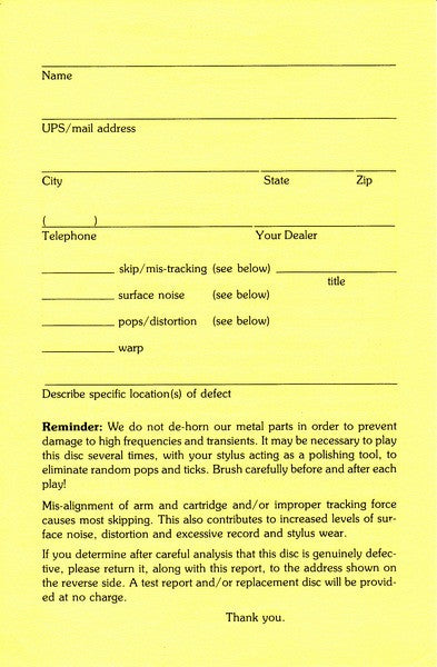 Specially plated and pressed on high definition super vinyl by Victor Company of Japan Ltd.