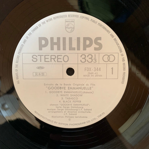 Serge Gainsbourg - Goodbye Emmanuelle (Extraits De La Bande Originale Du Film) (Vinyl, LP, Album, Promo) Very Good Plus (VG+) / Good Plus (G+)