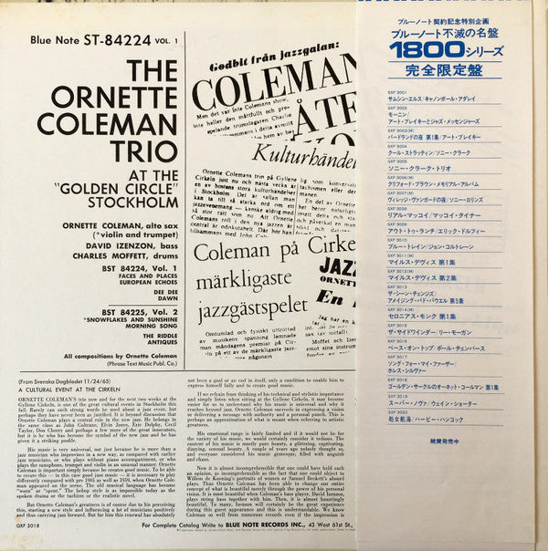 The Ornette Coleman Trio - At The "Golden Circle" Stockholm (Volume One) (Vinyl, LP, Album, Reissue) Very Good Plus (VG+) / Very Good Plus (VG+)