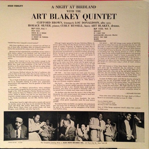 Art Blakey Quintet - A Night At Birdland, Volume 2 (Vinyl, LP, Compilation, Reissue, Mono) Near Mint (NM or M-) / Very Good Plus (VG+)