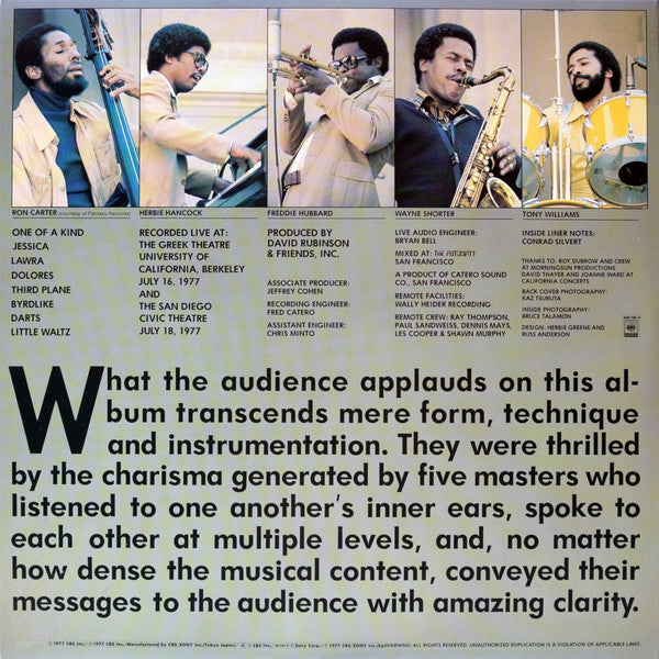 Main Cat#on spine & Obi: 40AP 798~9Recorded live at: The Greek Theatre University of California, Berkeley, July 16, 1977 and The San Diego Civic Theatre, July 18, 1977.