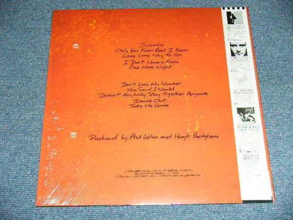 Japan version of No Jacket Required. The gatefold insert has the English lyrics on the left, with the Japanese translation of lyrics on the right. Track titles are in Japanese on the obi-strip, English on the Label, and English and Japanese on the inserts.There is an additional Warner Pioneer insert titled Recommended Best 9, showing 9 WEA International releases, the back is a send-in survey. (In Japanese).