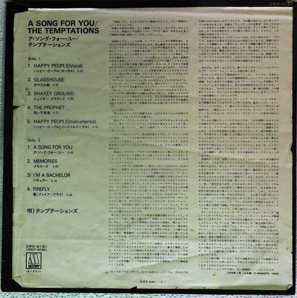 The Temptations - A Song For You (Vinyl, LP, Album) Very Good (VG) / Very Good (VG)