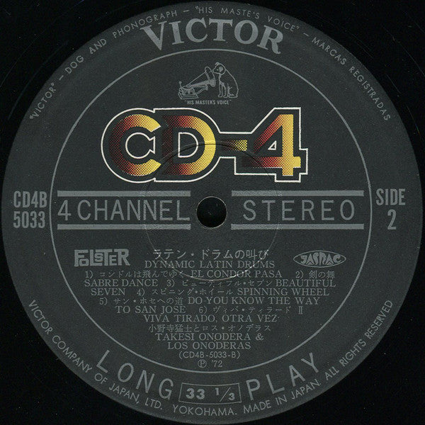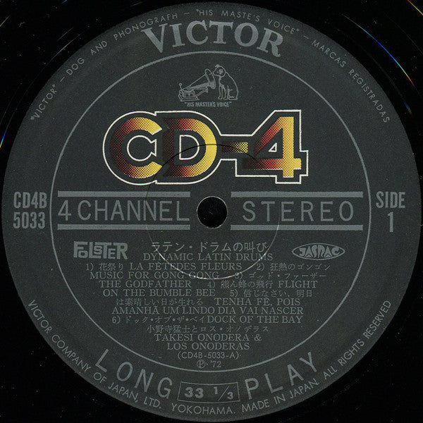 Takeshi Onodera & Los Onoderas - Dynamic Latin Drums (Vinyl, LP, Album, Quadraphonic) Very Good (VG) / Good Plus (G+)