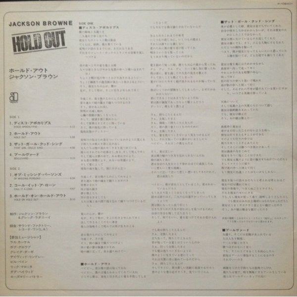 Jackson Browne - Hold Out (Vinyl, LP, Album, Stereo) Very Good (VG) / Very Good (VG)