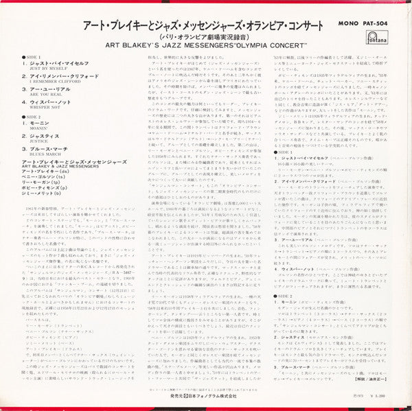 Art Blakey & The Jazz Messengers - Olympia Concert (Vinyl, LP, Album, Limited Edition, Reissue, Mono) Good Plus (G+) / Good Plus (G+)
