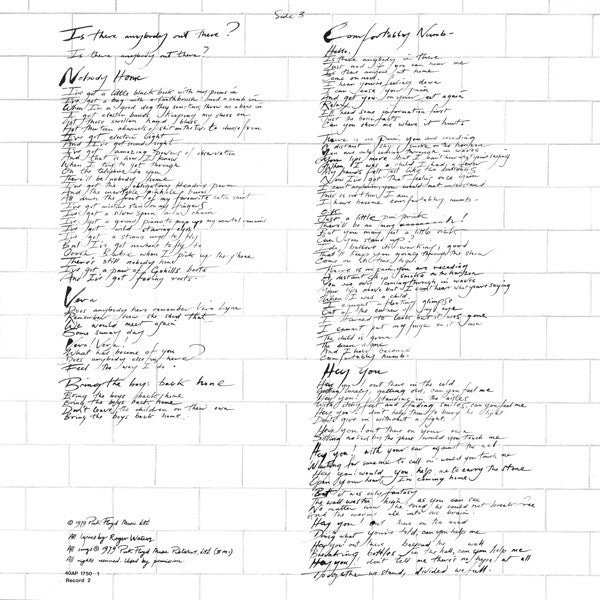 All songs © 1979 Pink Floyd Music Publishers, Ltd. (BMI)
