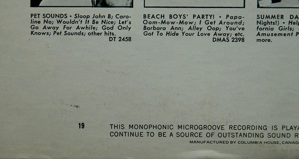 Album titled "Best Of The Beach Boys - Vol.1" on spine and back cover, but "Best Of The Beach Boys" on front cover and labels.