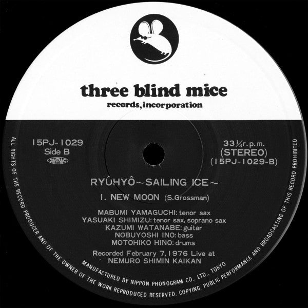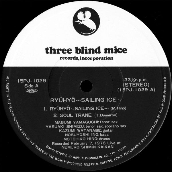 Motohiko Hino Quartet - "Ryûhyô" –Sailing Ice– Recorded "Live" In Nemuro (Vinyl, LP, Album, Reissue) Very Good Plus (VG+) / Very Good (VG)