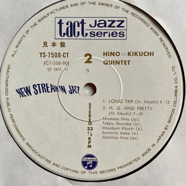 Hino=Kikuchi Quintet - Hino=Kikuchi Quintet (Vinyl, LP, Album, Reissue, Stereo) Very Good (VG) / Very Good (VG)