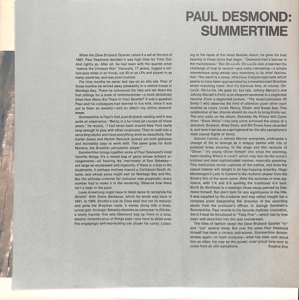 Paul Desmond - Summertime (Vinyl, LP, Album, Limited Edition, Reissue) Very Good (VG) / Good (G)