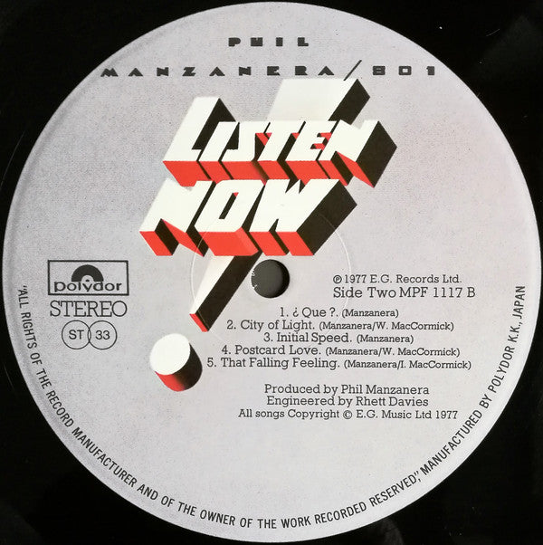 Phil Manzanera - Listen Now!! (Vinyl, LP, Album, Stereo) Very Good (VG) / Good Plus (G+)