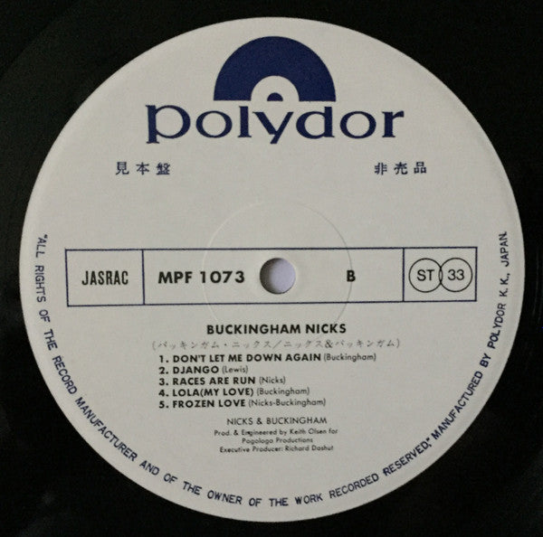 Buckingham Nicks - Buckingham Nicks (Vinyl, LP, Album, Promo, Repress) Very Good Plus (VG+) / Very Good Plus (VG+)