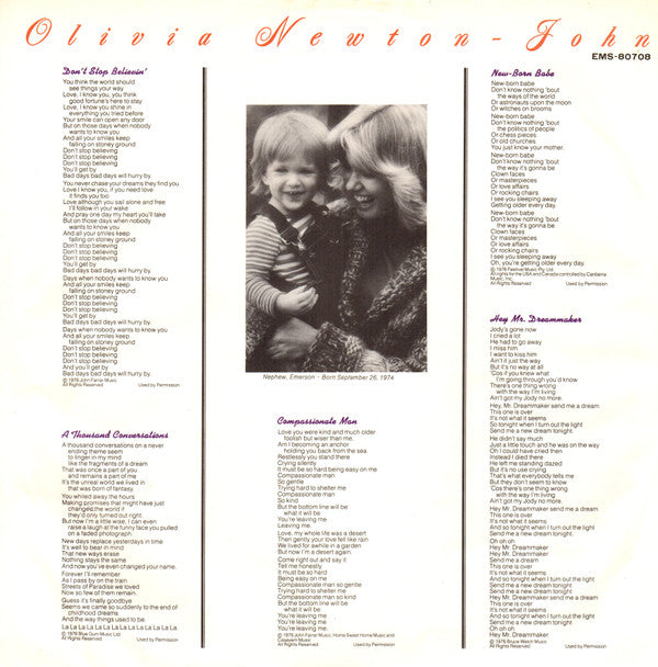 Olivia Newton-John - Don't Stop Believin' (Vinyl, LP, Album, Stereo) Very Good (VG) / Very Good (VG)