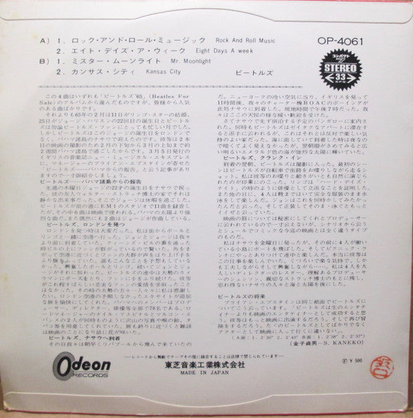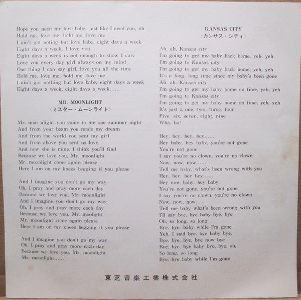 Japanese issue in picture sleeve with lyric insert. Price on reverse of sleeve ¥500.Red vinyl original issue. Also issued in black vinyl simultaneously.