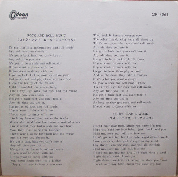 The Beatles - Rock And Roll Music (Vinyl, 7", 33 ⅓ RPM) Good Plus (G+) / Very Good (VG)