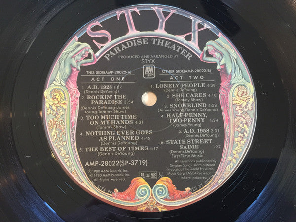 Styx - Paradise Theatre (Vinyl, LP, Album, Etched, Promo) Very Good (VG) / Very Good (VG)