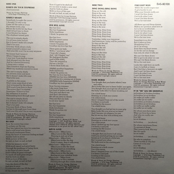 George Harrison - Dark Horse (Vinyl, LP, Album) Very Good Plus (VG+) / Good Plus (G+)