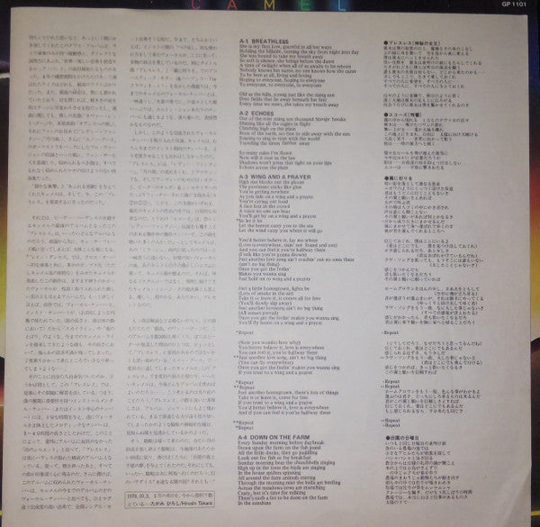 Made in Japan.Issued with a BIG fold-out full color poster (103cm/40inch X 72cm/28inch) from the Breathless tour which features the full line-up, but includes Jan Schelhaas on keyboards replacing Bardens who left just before the tour commenced! (See added picture)