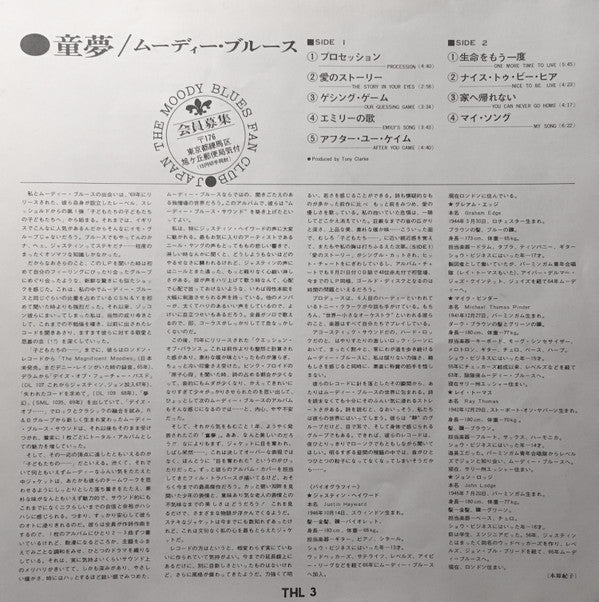 Including a 4 page sleeve size insert titled "The Moody Blues Fan Club Japan." Includes tracks,Japanese/Americans lyrics and other Moody Blues albums available.