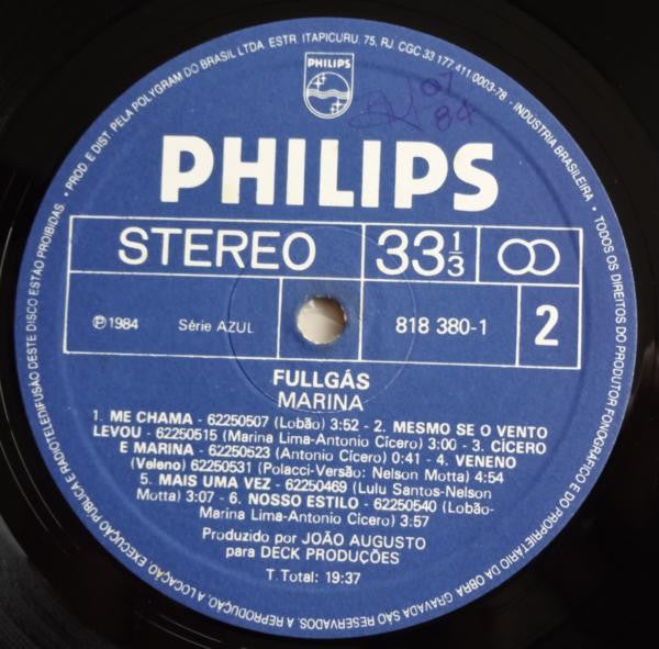 Marina Lima - Fullgás (Vinyl, LP, Album) Near Mint (NM or M-) / Very Good (VG)