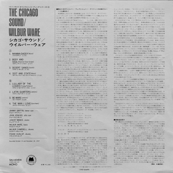 Wilbur Ware Quintet - The Chicago Sound (Vinyl, LP, Album, Reissue, Mono) Good Plus (G+) / Good (G)