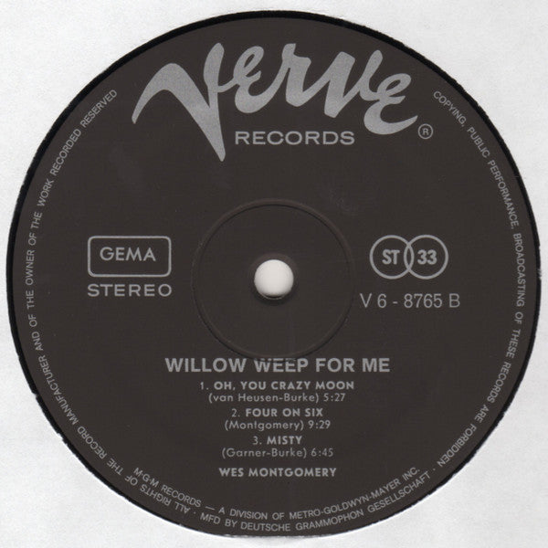 Wes Montgomery - Willow Weep For Me (Vinyl, LP, Album, Stereo) Good Plus (G+) / Good Plus (G+)