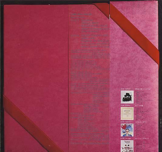 Romaji titles on back of sleeve, Japanese titles on center labels and obi, except for B4 which is only in Japanese on center label.