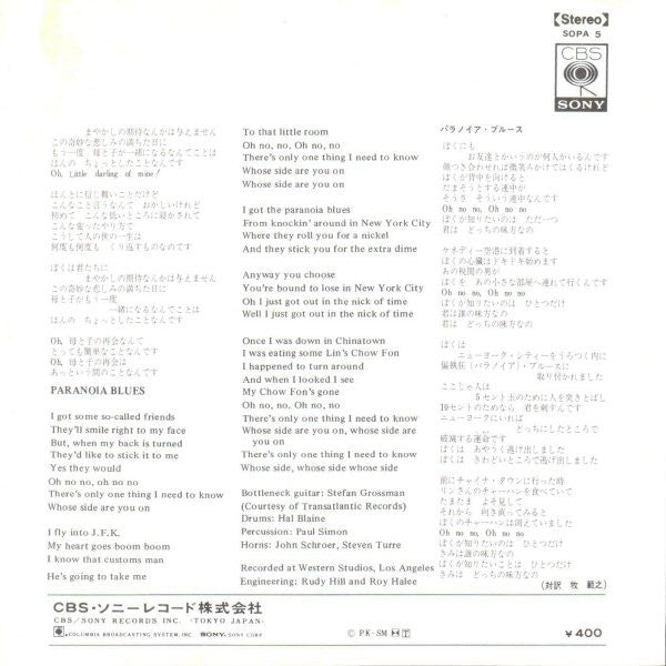 Paul Simon - Mother And Child Reunion / Paranoia Blues (Vinyl, 7", 45 RPM, Single, Stereo) Very Good Plus (VG+) / Very Good Plus (VG+)