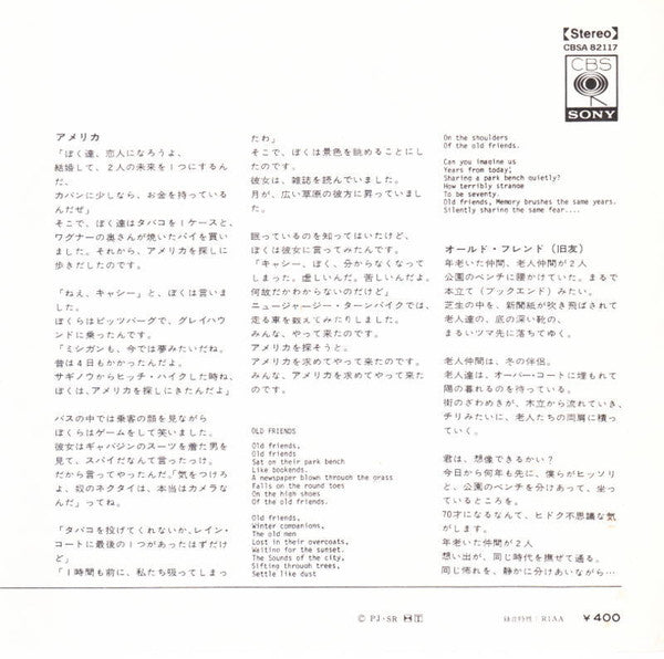 Simon & Garfunkel - America / Old Friends (Vinyl, 7", 45 RPM, Single) Very Good (VG) / Very Good (VG)