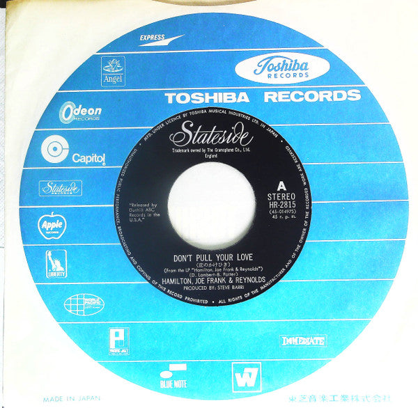 Hamilton, Joe Frank & Reynolds - Don't Pull Your Love (Vinyl, 7", 45 RPM, Single) Very Good (VG) / Very Good Plus (VG+)