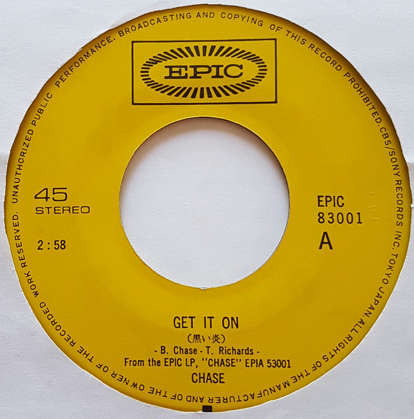 Chase (5) - Get It On (黒い炎) (Vinyl, 7", 45 RPM, Single) Very Good (VG) / Very Good (VG)